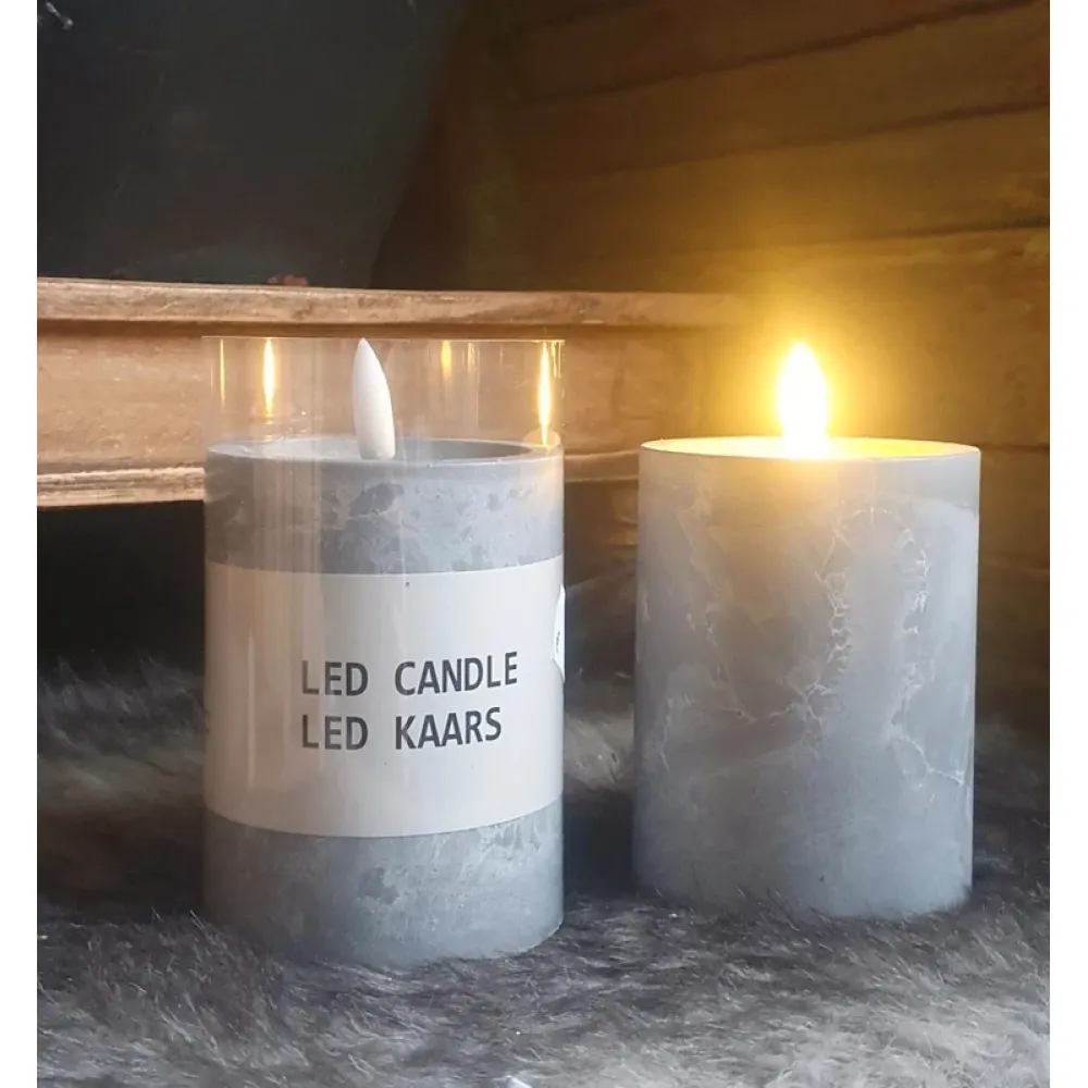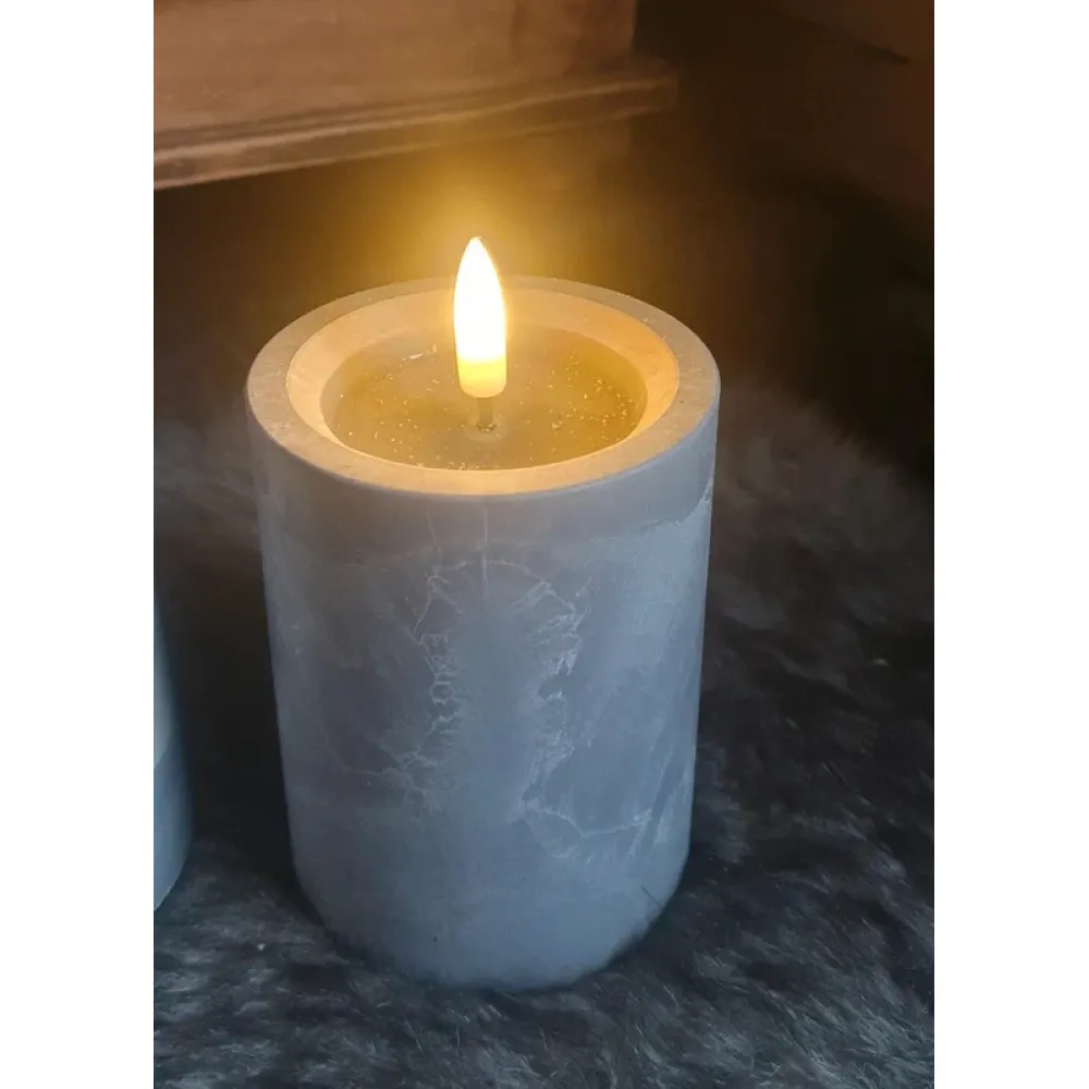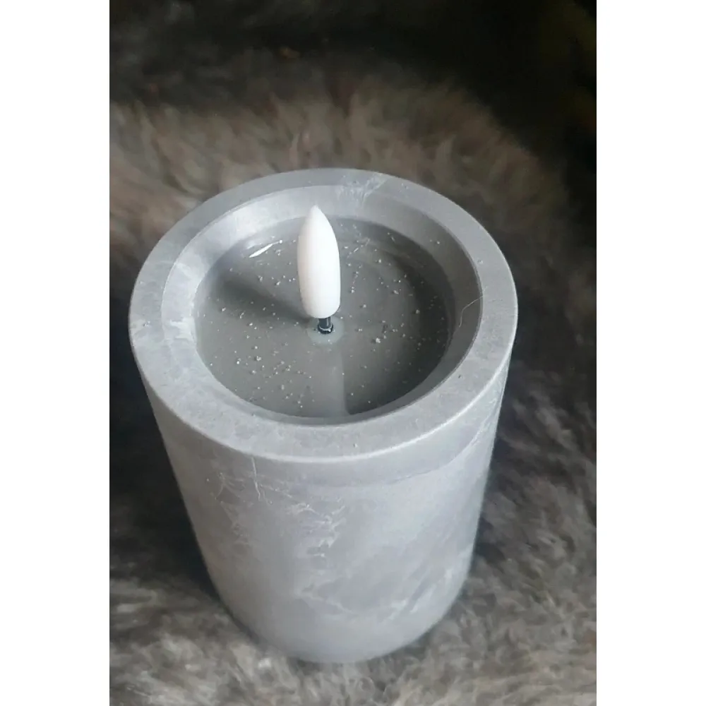 Leuke led stompkaars in grijze marmerlook. Formaat 12,5 hoog en diameter 7,5 cm